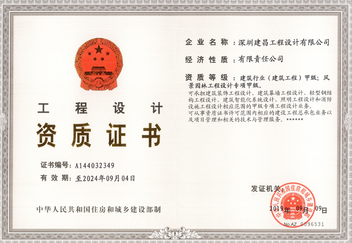 建昌榮譽丨熱烈慶賀建昌設(shè)計榮獲風景園林工程設(shè)計專項甲級資質(zhì)
